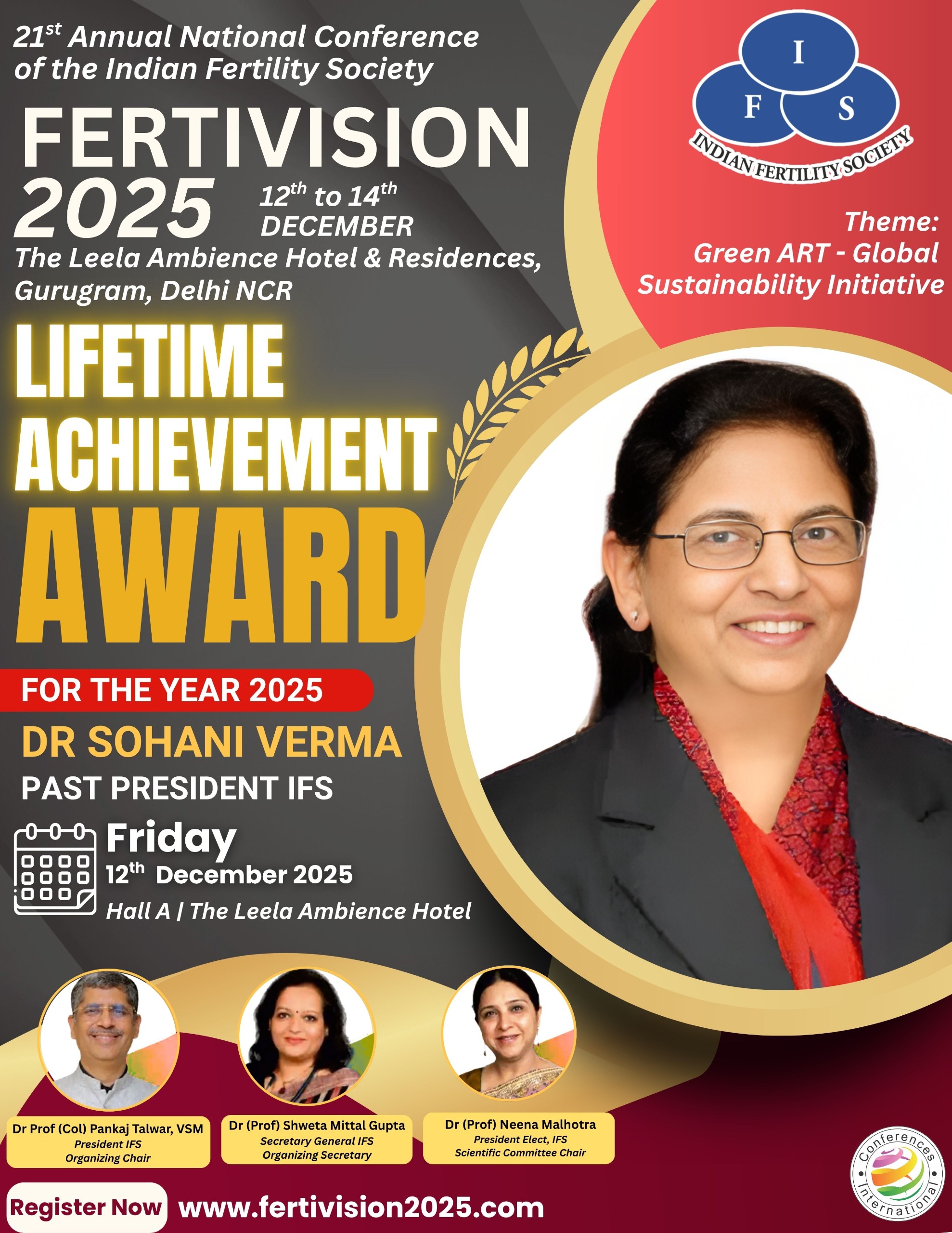 Fertivision 2025 Lifetime Achievement Award for the Year 2025 Dr. Sohani Verma, 12th December 2025
