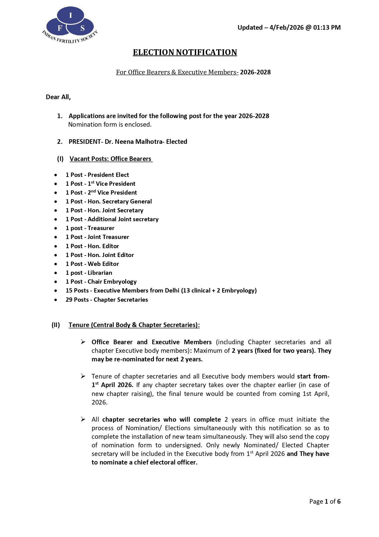 IFS Election Notification & Nomination Form (2026-2028)