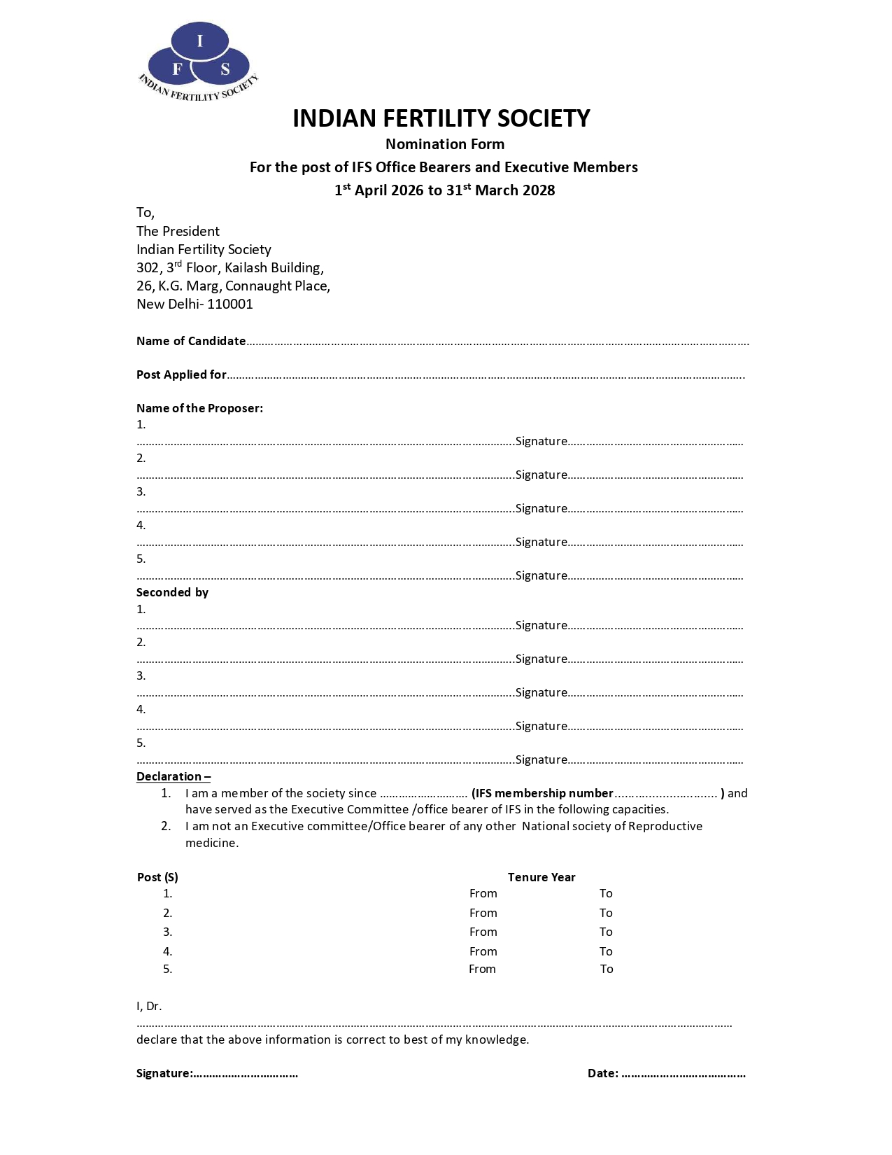 Nomination Form 2026-28 IFS