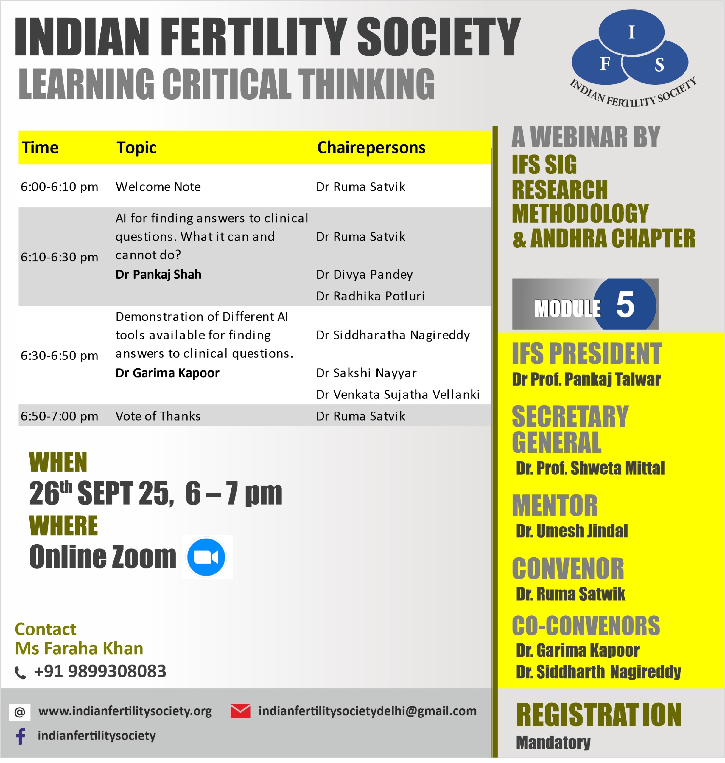 • IFS Learning Critical Thinking a Webinar by IFS SIG Research Methodology & Andhra Chapter, 26th September 2025